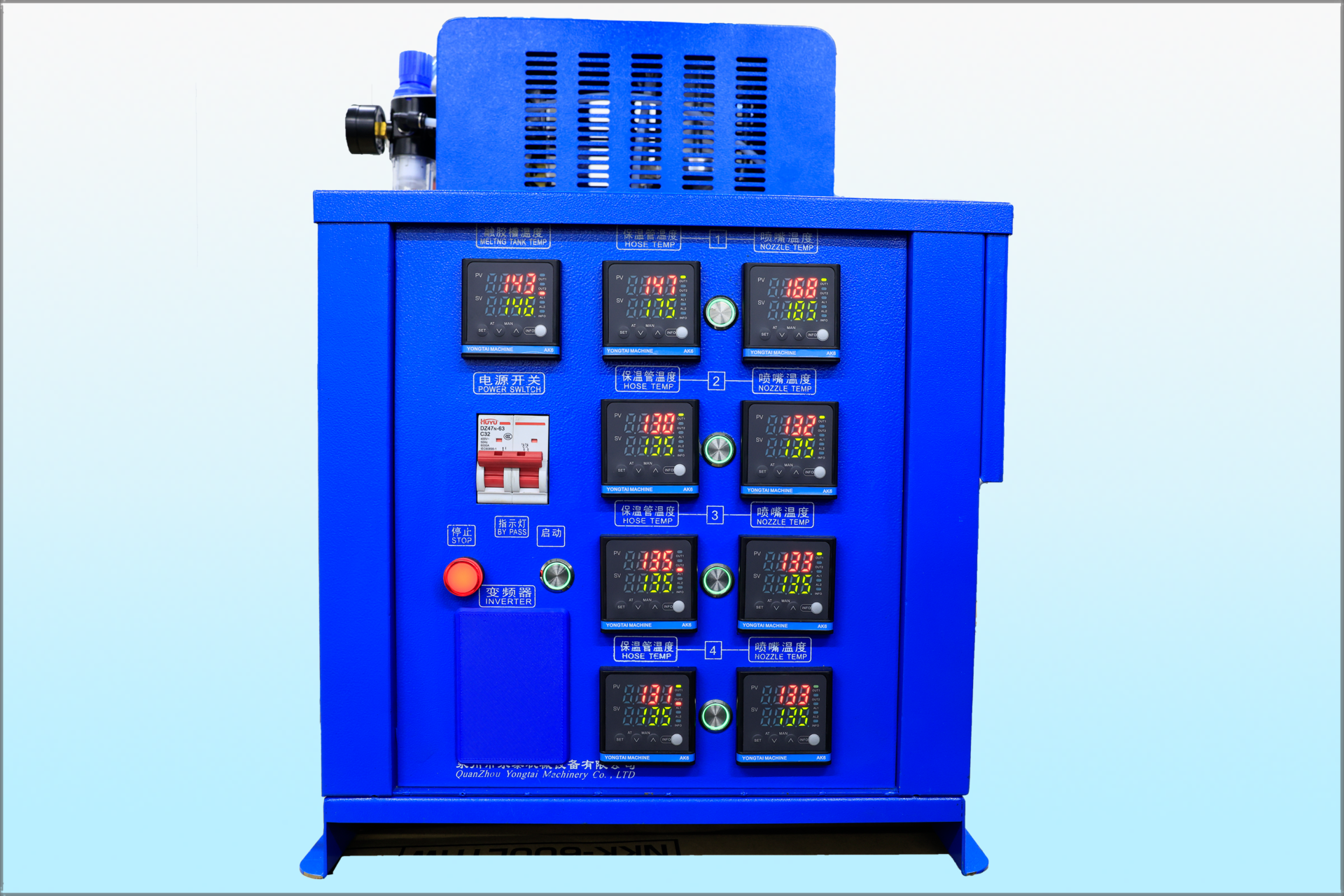 コントローラータンク・ホース・ガンの温度を独立して設定可能。